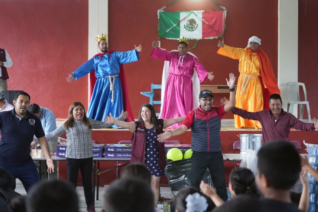 El Terrero, Emiliano Zapata, Ver., 07/01/23.- Melchor, Gaspar y Baltazar cumplieron la ilusión de cientos de niñas y niños de El Terrero, a través de Juguemos Juntos «Tiempo de Jugar», iniciativa del presidente municipal de Emiliano Zapata, Erick Ruíz Hernández, y del DIF Municipal, para llevar juguetes y roscas de reyes a las localidades que más lo necesitan.