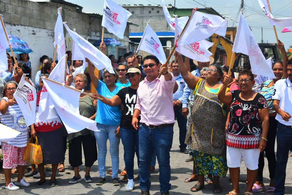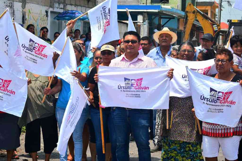 Úrsulo Galván, Ver. – Decenas de vecinos de la calle Morelos y de la cabecera municipal, se dieron cita para presenciar el banderazo de la primera obra pública del segundo año de gestión de la administración que encabeza el licenciado Eder Jero Hernández Lara; se trata de la segunda etapa de la pavimentación con concreto hidráulico de la calle Morelos, con guarniciones y banquetas, entre las calles Gutiérrez Zamora y Hernán Cortes.