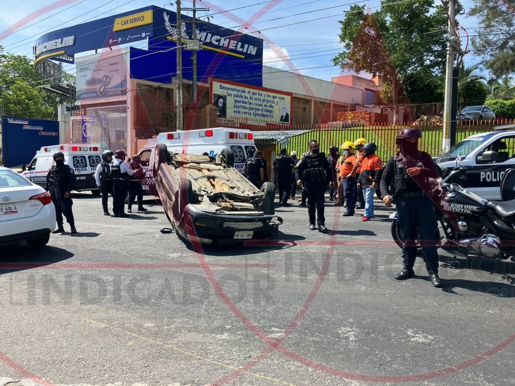 Los hechos se registraron metros antes de llegar a Plaza Xanat. Según se informó, al llegar al semáforo para ingresar a Las Trancas, luego de impactarse con una camioneta, el automóvil negro terminó volcado.