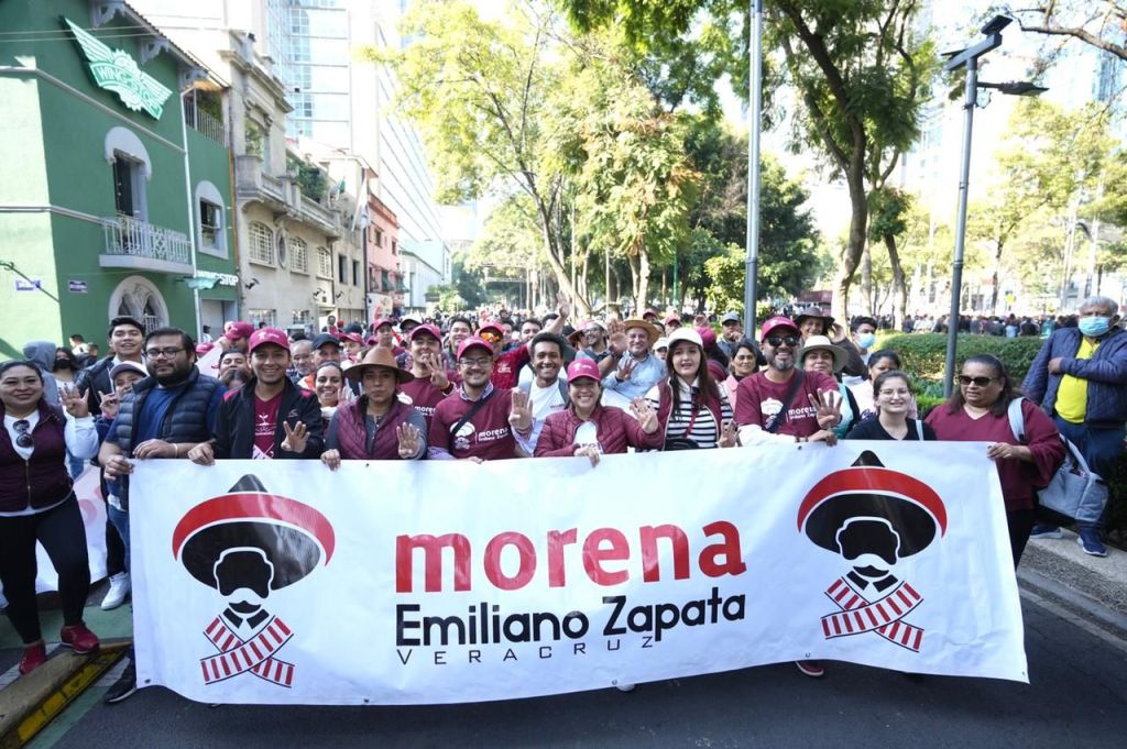 El contingente de Emiliano Zapata fue uno de los varios provenientes del estado de Veracruz y que contó con la presencia del gobernador Cuitláhuac García Jiménez, entre otros representantes del movimiento en la entidad, quienes se sumaron a los miles que acudieron al cuarto informe de gobierno del Presidente.