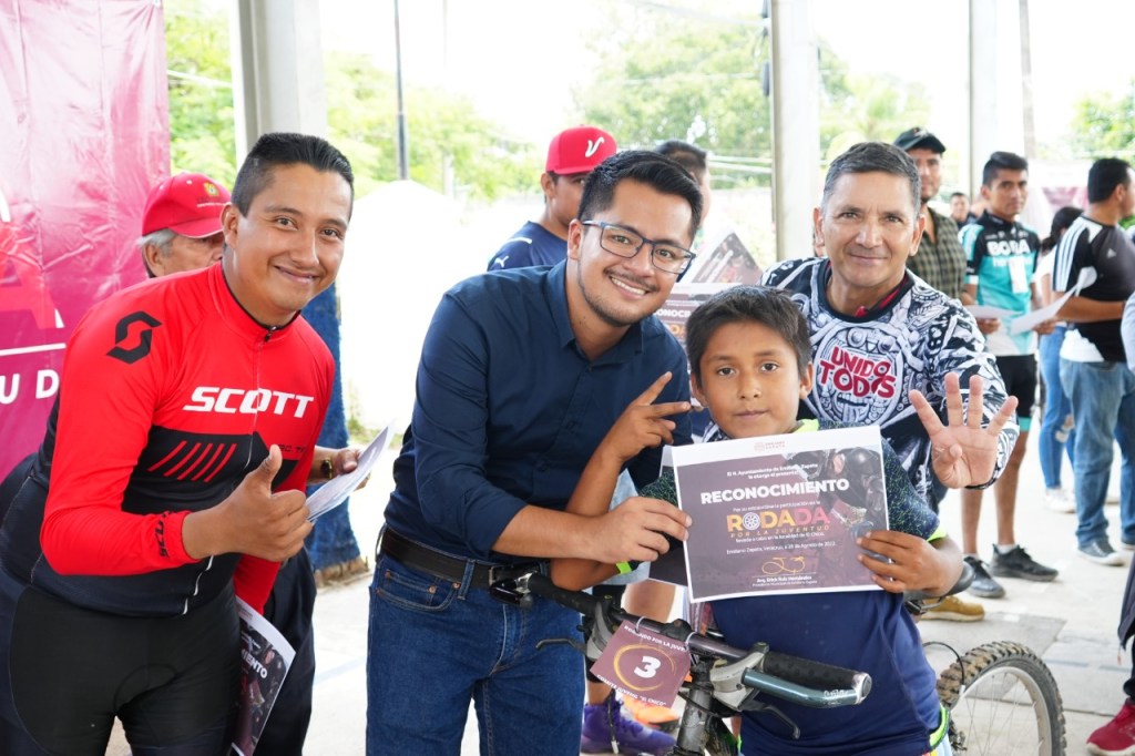 El Chico, Emiliano Zapata, Ver. 28 de agosto de 2022.- Con el objetivo de promover el cuidado del medio ambiente y el deporte entre la población juvenil, el gobierno municipal de Erick Ruiz Hernández realizó la Primera Rodada por la Juventud con la participación de ciclistas de Emiliano Zapata y municipios vecinos.
