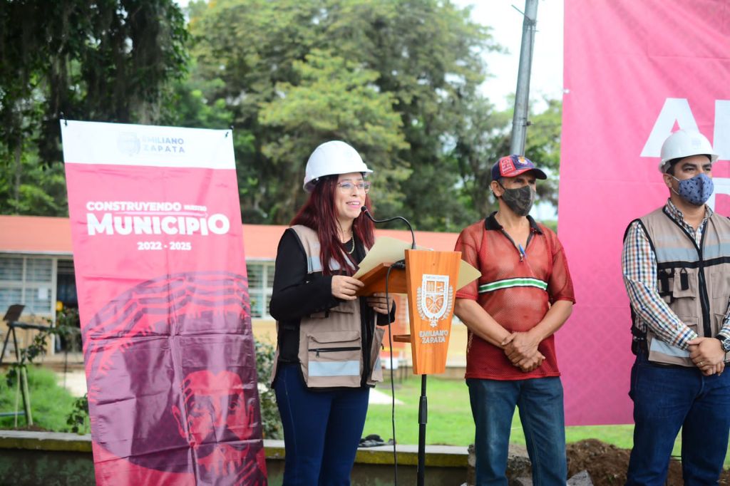 La Estanzuela, Emiliano Zapata, Ver. 29 de julio de 2022.- Con austeridad se atienden obras en zonas estratégicas de Emiliano Zapata, destacó el presidente municipal, Erick Ruíz Hernández, durante el banderazo a la construcción de una barda perimetral en el Jardín de Niños “Sor Juana Inés de la Cruz” y la pavimentación con concreto asfáltico de la calle Independencia, ambas en la localidad La Estanzuela.