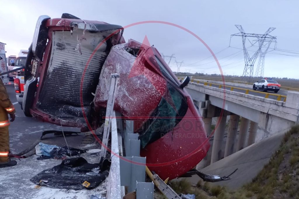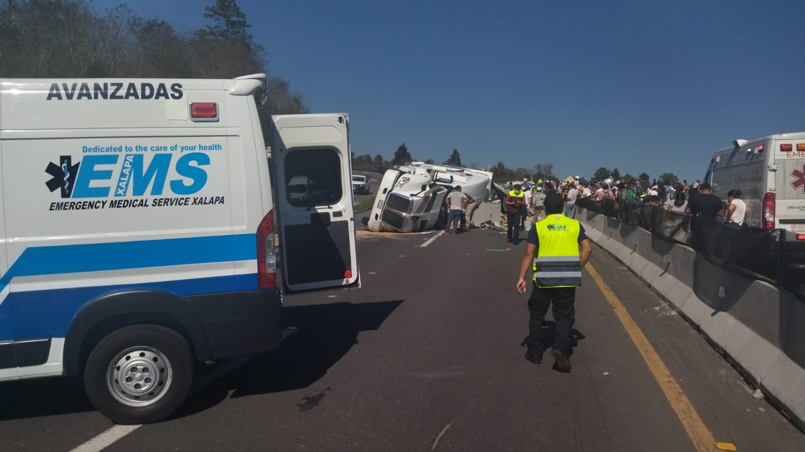 El accidente ocurrió en el carril que va con rumbo a la capital Banderilla; la carretera se encuentra bloqueada para los vehículos que bajan por dicho carril.