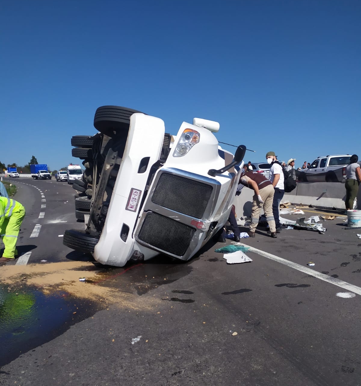 La volcadura se encuentra en el carril que va con rumbo a la capital. Se recomienda tomar las precauciones pertinentes.