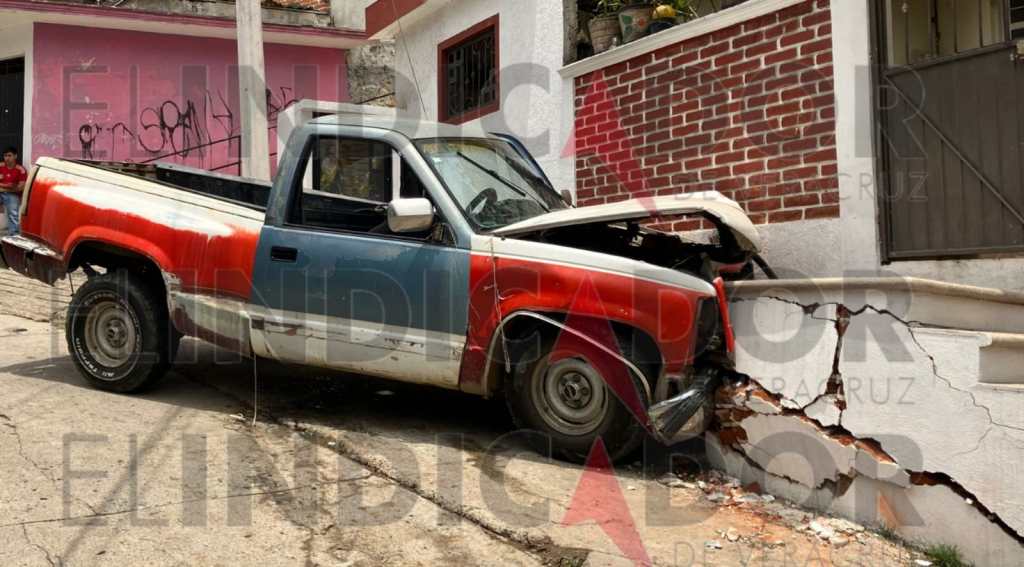Este mediodía una camioneta se impactó contra la fachada de una vivienda ubicada en la colonia Lomas de San Roque en Xalapa; se presume se quedó sin frenos.